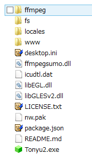 このアーカイブ内のffmpegフォルダを、Tonyu2の実行ファイルのあるフォルダに解凍してください